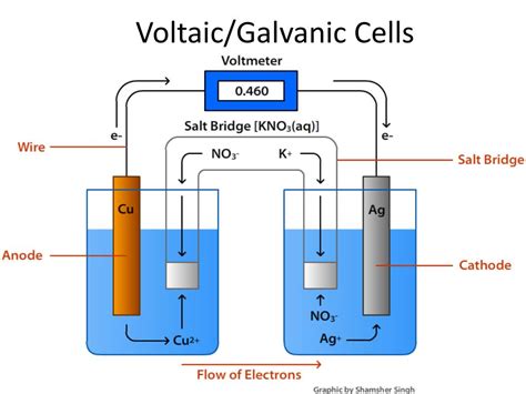 A galvanic voltaic cell, also known as a galvanic cell or voltaic cell, is a device that uses a chemical reaction to create an electrical current. The galvanic cell works by transforming energy from one form to another form in the form of electricity. The chemicals used in the cell are redox couples, which are two chemicals that can oxidize or reduce each other. When the two chemicals are combined, the reaction produces electrons, which flow out of the cell as an electrical current.